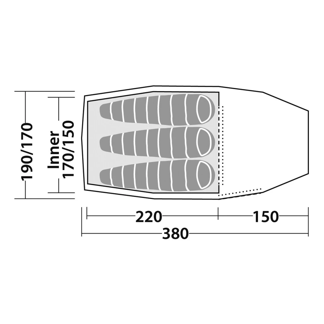 Dieses Tunnelzelt bietet viel komfortablen Raum für bis zu drei Personen und ist stabil und einfach aufzubauen. Es hat eine Seitentür, die zu einem großzügigen Vorraum führt. Auch besitzt es viel Staufläche und eine angenehme Höhe, um bei schlechtem Wetter entspannt im Inneren sitzen zu können. Das geringe Gewicht und der viele Platz, lässt dieses Zelt somit als geräumige Option erscheinen. Vordere und hintere Lüftungsöffnungen erzeugen einen Luftstrom, um die Kondensation zu minimieren.