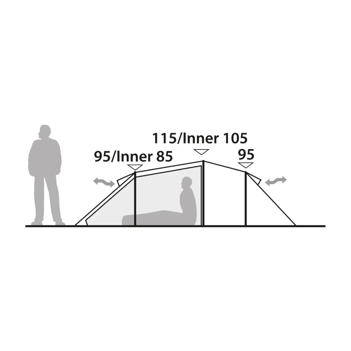 Für Radfahrer, Wanderer und andere Leichtgewichtsnutzer bietet die einfache, konische Form in Tunnelanordnung dieses Drei-Jahreszeiten-Zeltes alle nötigen Features und den erforderlichen Wohnkomfort. Ein großzügiger Innenraum und das gute Platzangebot fürs Gepäck bieten gute Alltagstauglichkeit. Schnell und einfach aufzubauen. Das Außenzelt wird zuerst (oder zusammen mit dem Innenzelt) aufgebaut.
