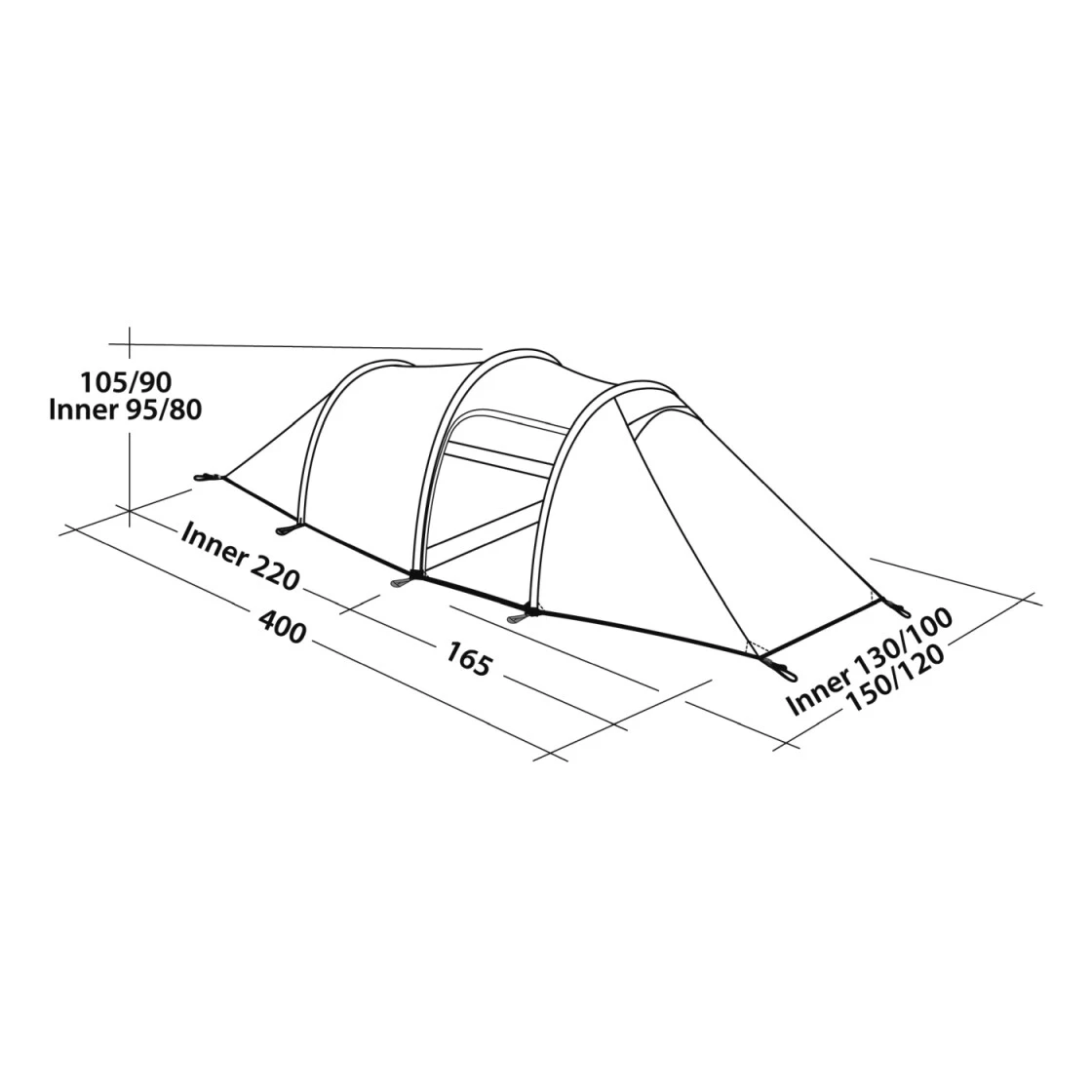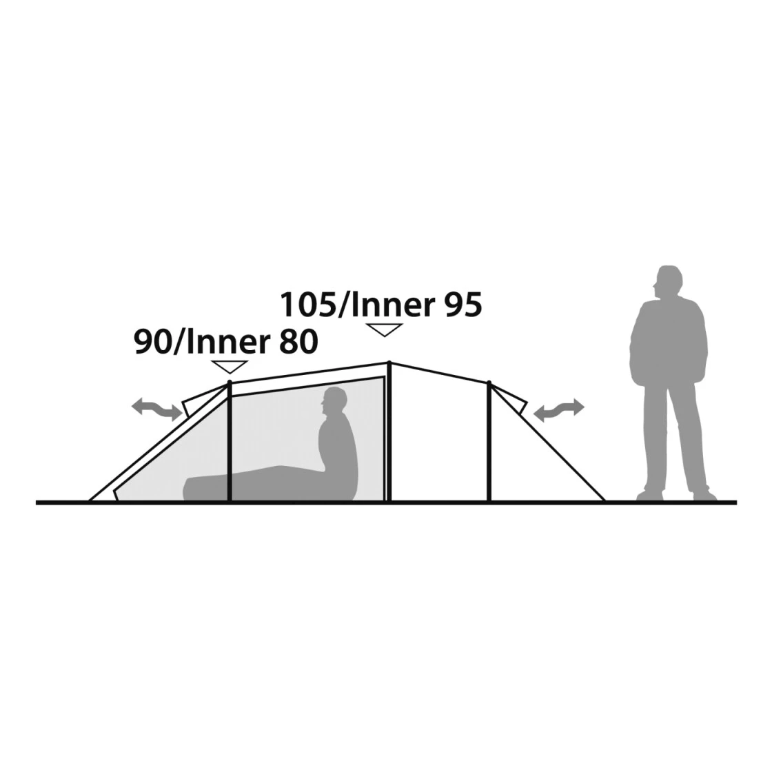 Für Radfahrer, Wanderer und andere Leichtgewichtsnutzer bietet die einfache, konische Form in Tunnelanordnung dieses Drei-Jahreszeiten-Zeltes alle nötigen Features und den erforderlichen Wohnkomfort. Ein großzügiger Innenraum und das gute Platzangebot fürs Gepäck bieten gute Alltagstauglichkeit. Schnell und einfach aufzubauen. Das Außenzelt wird zuerst (oder zusammen mit dem Innenzelt) aufgebaut.