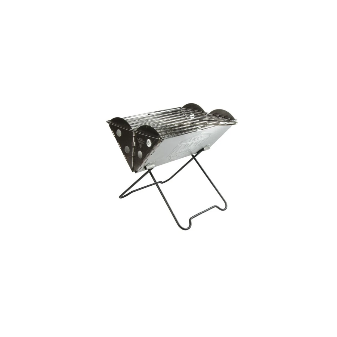 Stabiler und schnell auf- und abzubauender Grill aus Edelstahl.