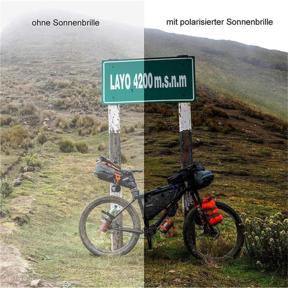 Formschöne Sonnenbrillen mit polarisierten Brillengläsern aus kratzfestem und splitterfreiem Polycarbonat. Die Brillenfassung ist aus widerstandsfähigem, flexiblem und splitterfreiem Material gefertigt. Die Gläser haben die Filterkategorie 3 und filtern UVA-, UVB- und UVC-Strahlung bis 400 Nanometer. Perfekt geeignet für den Strand, Berge, Biergarten oder für Fahrradtouren.