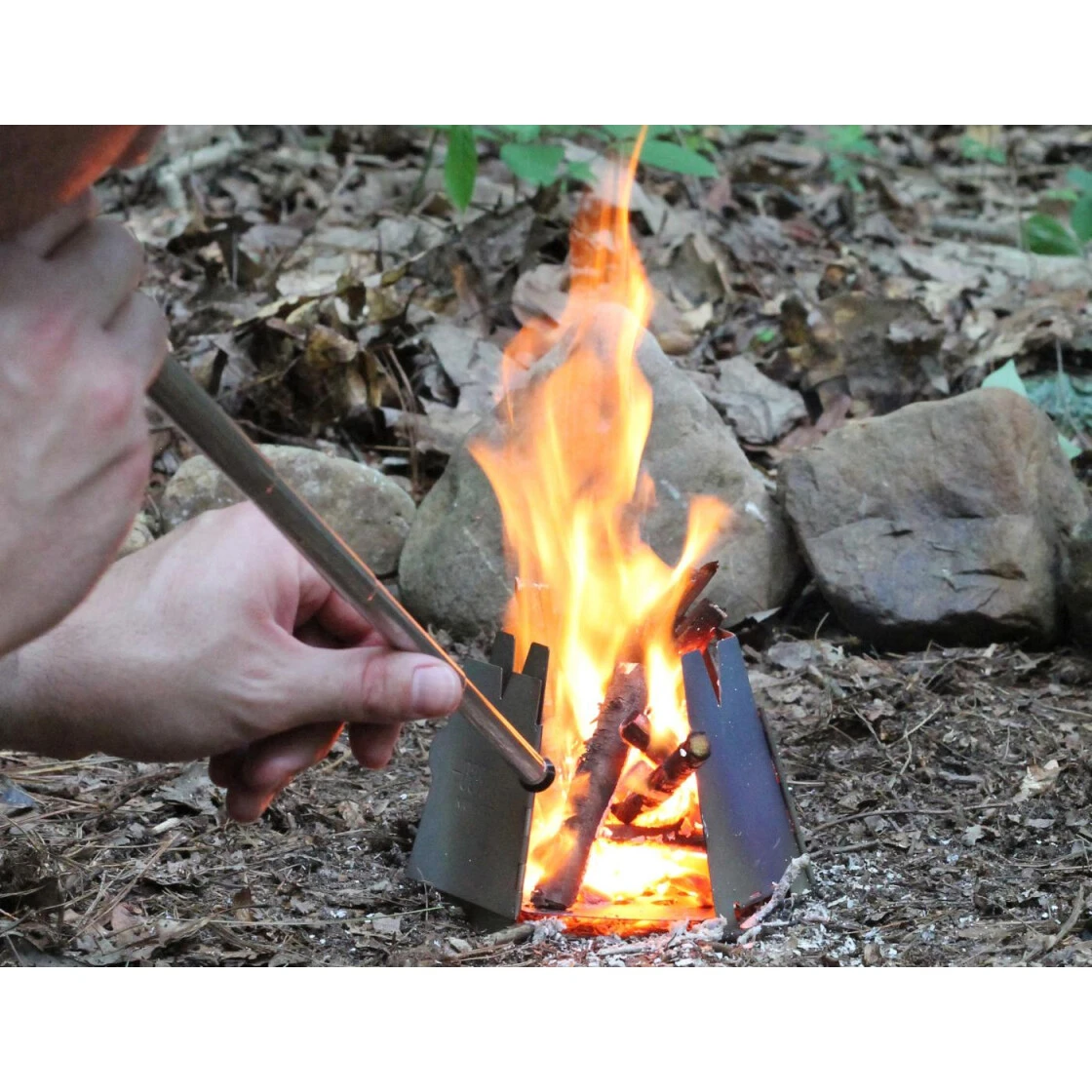 Dieser Feuerstarter bietet alles, was man braucht, um ein Feuer zu starten, außer dem Treibstoff. Einfach den Zündstahl abschrauben und mit dem integrierten Schaber den Zunder entzünden. Dann das Blasrohr auseinander ziehen und sanft in die Glut blasen um die Funken in Flammen zu verwandeln. Auch perfekt um die Hitze eines Feuers zu verbessern, um feuchte Brennstoffe zu entzünden oder Grillkohle zu entfachen.