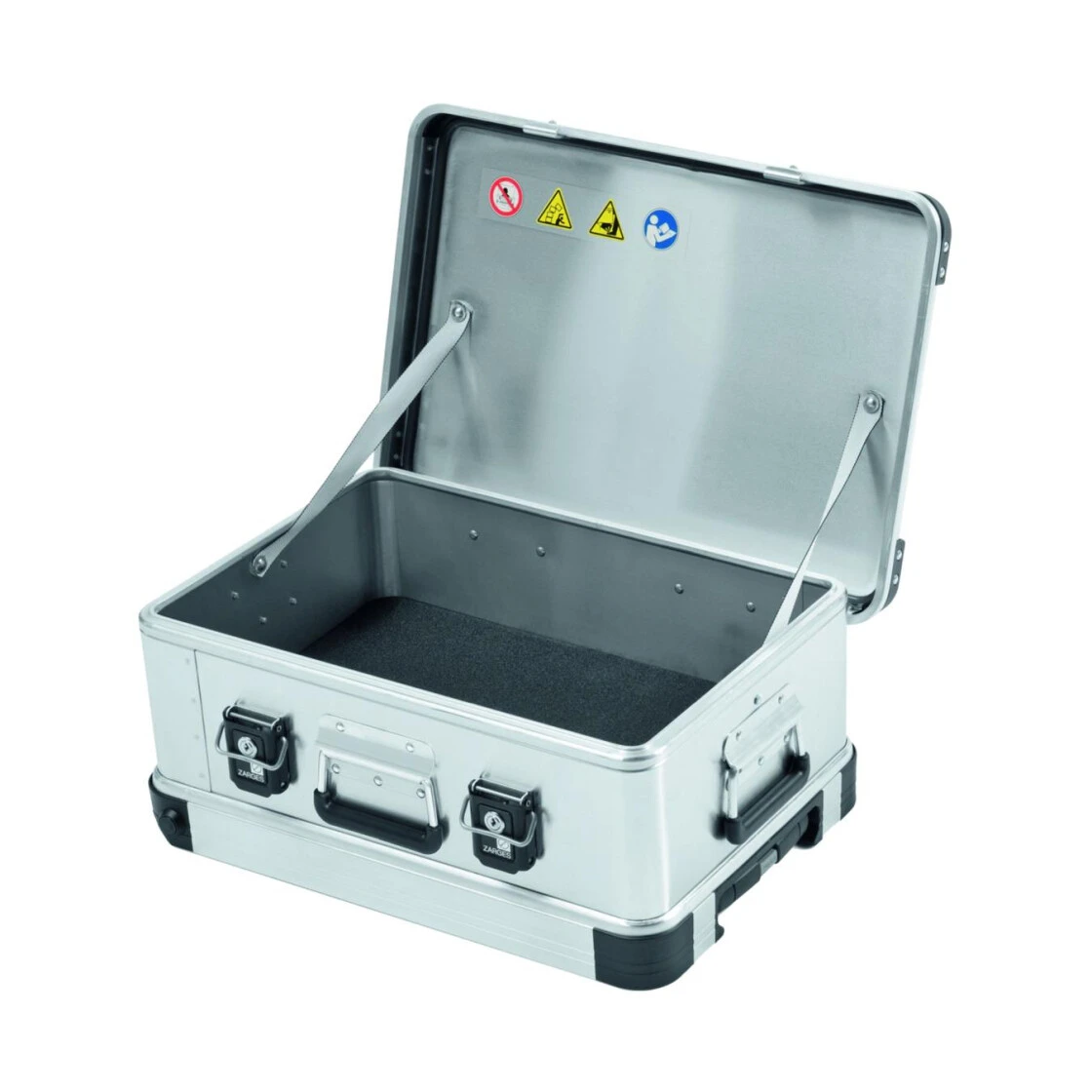 Robuste und mobile Aluminiumkisten in gewohnter Zarges Qualität. Die hochfesten Boxen besitzen eine hohe Lebensdauer und bieten dank der aus Polyurethan und Polyamid gefertigten 50mm Spezialrollen eine optimale Mobilität mit hoher Laufruhe. Die Boxen sind mit Ausziehgriff und Federfallgriff an der Stirnseite, sowie den Zarges Comfort-Verschlüssen mit extrem langer Lebensdauer ausgestattet. Mit aus schlagfestem Kunststoff gefertigten Stapelecken und serienmäßig vorhandener Bodenschaumeinlage aus abriebfestem PE-Schaum. Trotz des geringen Eigengewichtes, weisen diese Boxen eine hohe Belastbarkeit von bis zu 50kg Gesamtgewicht auf.
